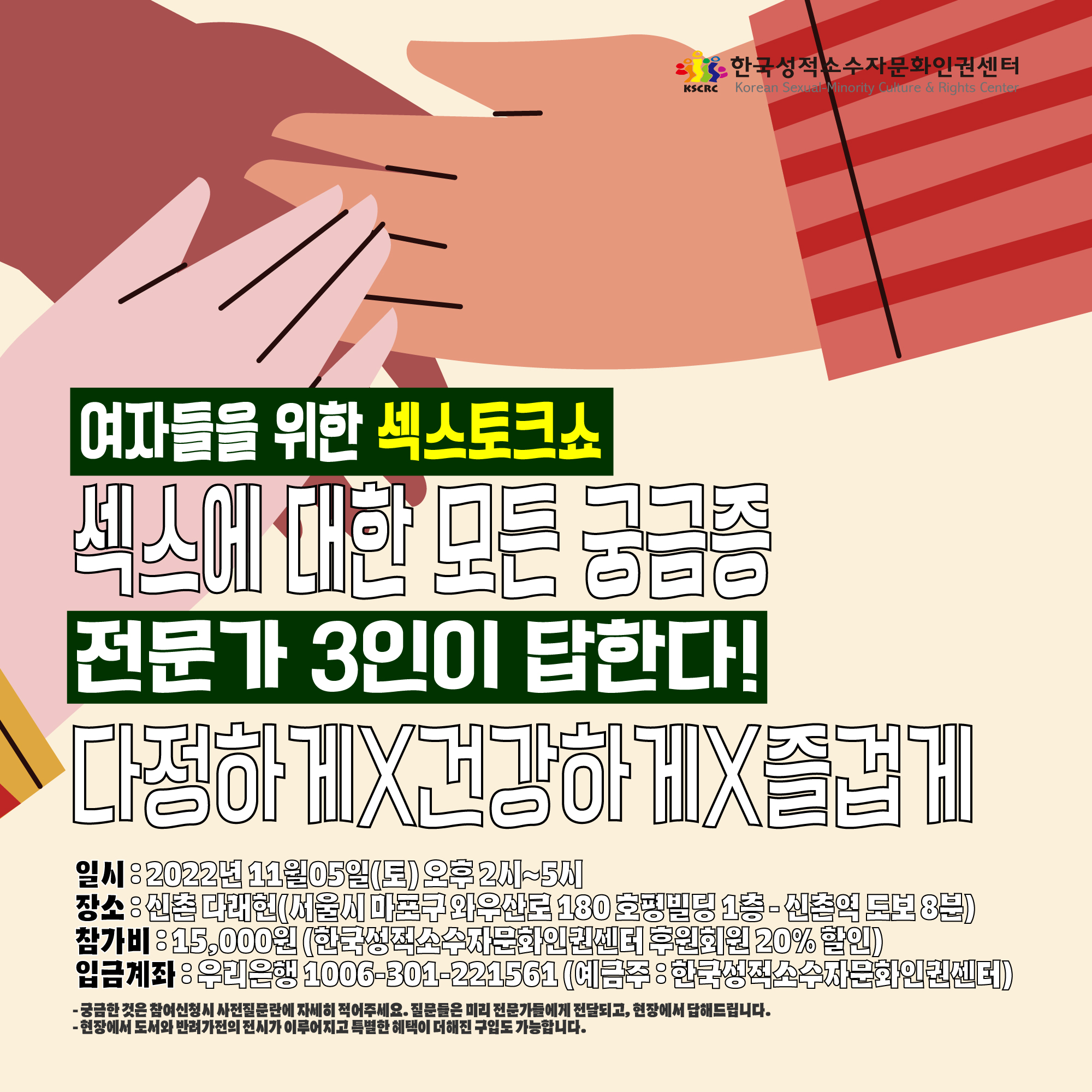 [진행 완료] 여자들을 위한 섹스토크쇼 섹스에 대한 모든 궁금증, 전문가 3인이 답을 합니다! < 다정하게 X 건강하게 X 즐겁게 >